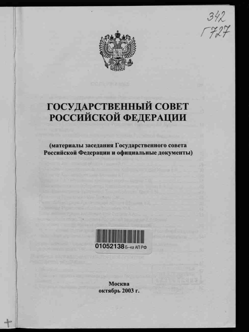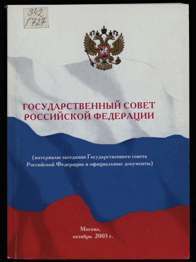 Государственный совет Российской Федерации : (материалы заседания Государственного совета Российской Федерации и официальные документы) : [г. Москва, 29 октября 2003 года]. - Москва, октябрь 2003 г. - 513 с. : табл., граф., диагр. ; 21х15 см