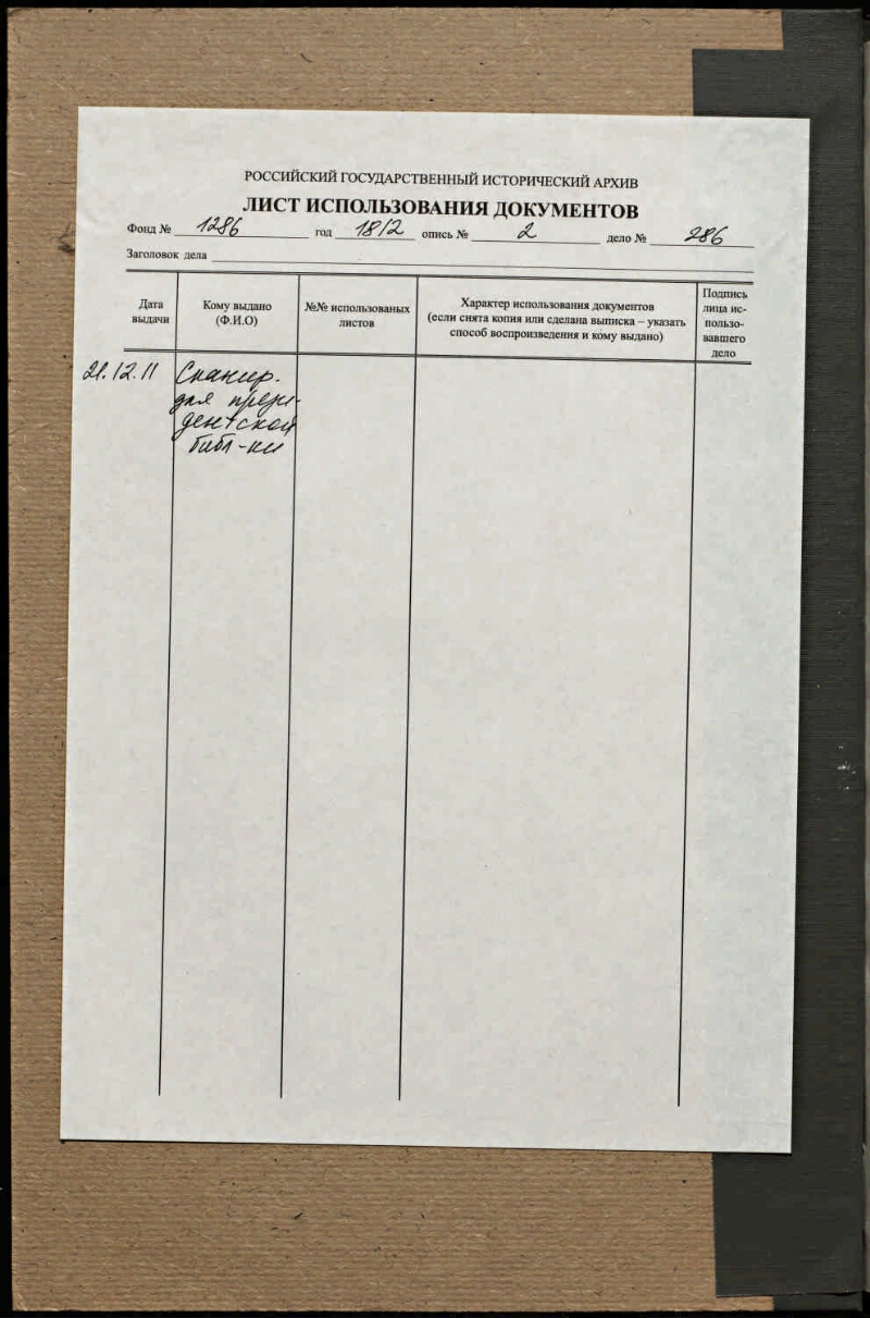 Источник электронной копии: РГИА Место хранения оригинала: РГИА. Ф. 1286. Оп. 2. Г. 1812. Д. 286.