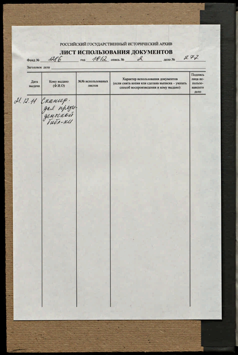 Источник электронной копии: РГИА Место хранения оригинала: РГИА. Ф. 1286. Оп. 2. Г. 1812. Д. 277.