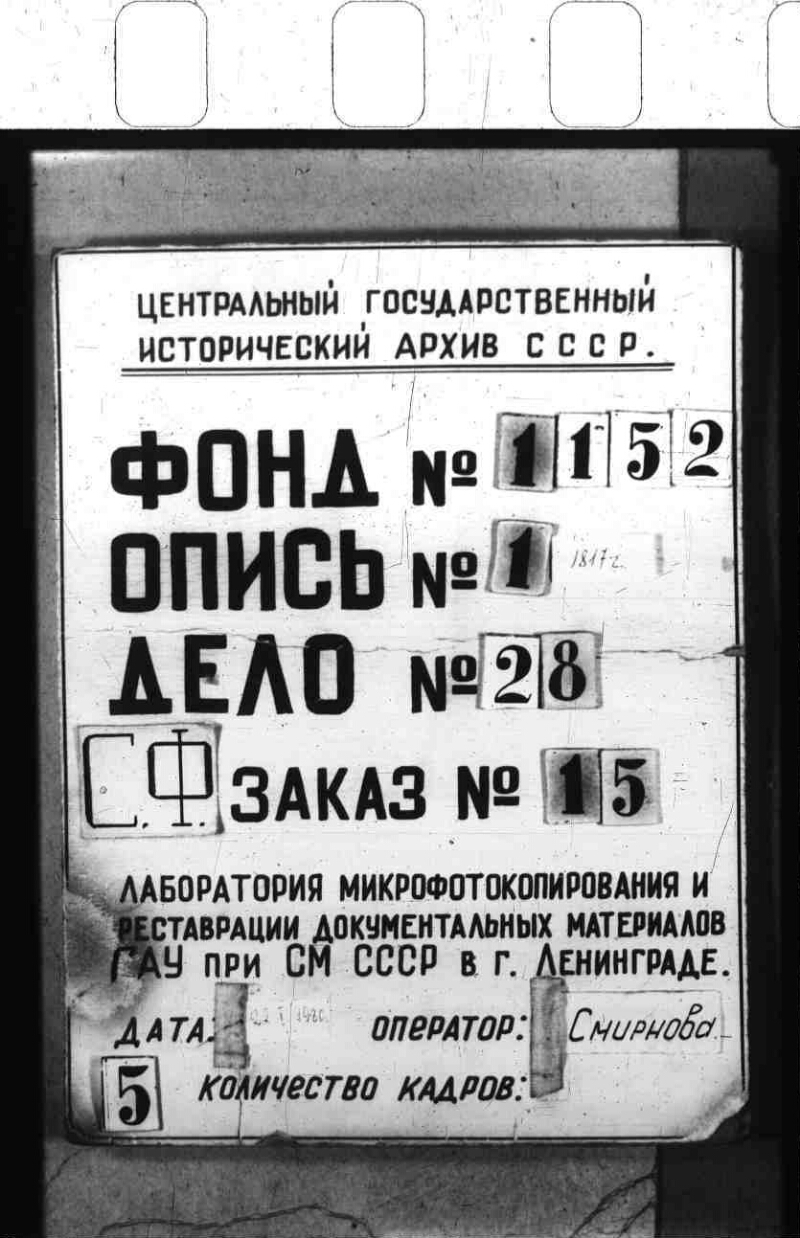 Источник электронной копии: РГИА Место хранения оригинала: РГИА. Ф. 1152. Оп. 1. 1817. Д. 28.