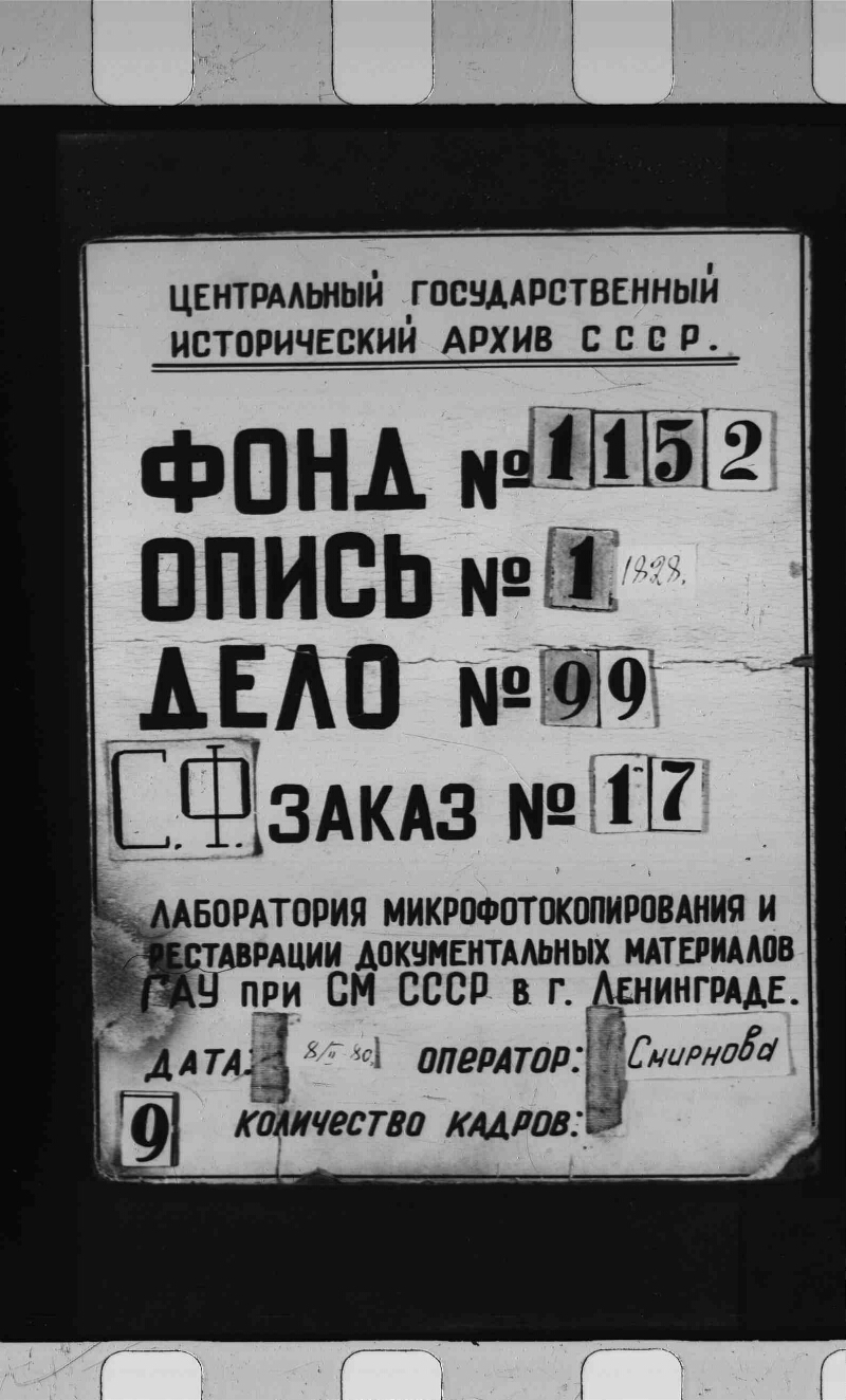 Место хранения оригинала Федеральное казенное учреждение "Российский государственный исторический архив"