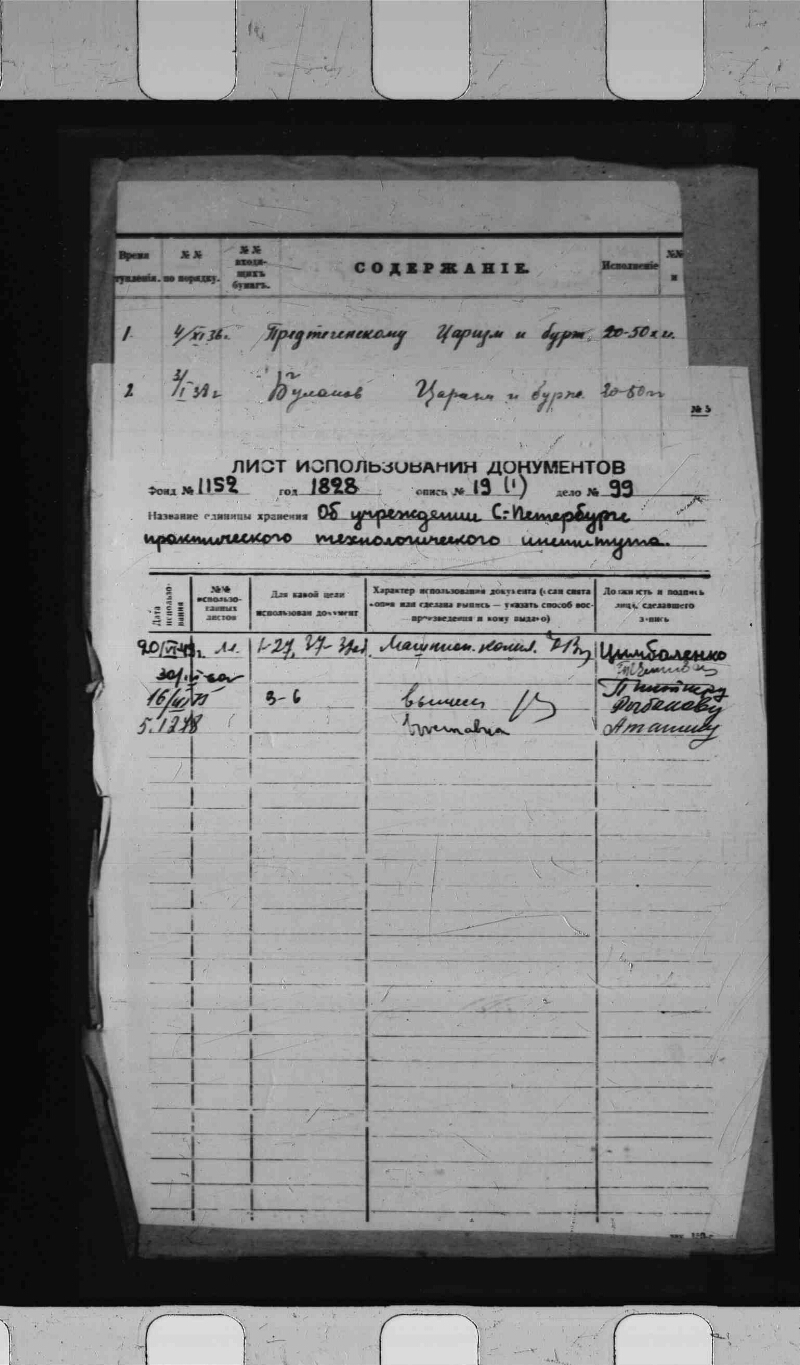 Аннотация Дело содержит документы, связанные с учреждением в Санкт-Петербурге Практического Технологического института: отношение Главного управляющего Комитетов Министров, выписки из Журналов Комитета министров, записку Министра финансов, проекты положений об устройстве, табели обмундирования, штатные и другие документы