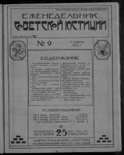 Еженедельник советской юстиции. - Москва : Юридическое издательство НКЮ РСФСР, 1922-1929. - Главными редакторами "Еженедельника Советской Юстиции" были Н. Черлюнчакевич (1922 год), А. Лисицин (1922–1923 гг.), Н. Крыленко (1923–1925 гг.), Д. Курский (1926–1928 гг.), Я. Бранденбургский (1928–1929 гг.), П. Стучка (1929 год). С 1928 года "Еженедельник Советской Юстиции" выходит три раза в месяц с приложением "Судебная практика РСФСР" под редакцией Председателя Верховного Суда РСФСР П. Стучки. Загл.: 1930-1993 - Советская юстиция, 1994-2001 - Российская юстиция