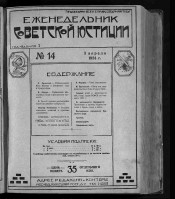 1924, № 14 (3 апр.). - 1924. - С. [315]-342, [2]. - Содерж.: Районирование Юго-Востока и построение суда и прокуратуры / С. Орловский. Применение иностранных норм в гражданском процессе / И. Брауде. О порядке рассмотрения жалоб на действия нотариусов / П. Тр. Решения земельных комиссий и судебные исполнители / Вилькер-Котковский. Пробелы ст. 140 УК / А. Шувалов. По поводу ст. 85 Уг. Код. / Малов. О народн. заседателях / А. Генов. Голос следователя / И. Федоров. Обзор сов. законодательства с 15 по 23 марта 1924 г. / М. Брагинский. Сводный отчет о деятельности губ и нар. судов РСФСР за 4 четверть 1923 г. Приложение к Проекту Кодекса законов о браке, семье и опеке и др.