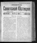 Еженедельник советской юстиции. - Москва : Юридическое издательство НКЮ РСФСР, 1922-1929. - Главными редакторами "Еженедельника Советской Юстиции" были Н. Черлюнчакевич (1922 год), А. Лисицин (1922–1923 гг.), Н. Крыленко (1923–1925 гг.), Д. Курский (1926–1928 гг.), Я. Бранденбургский (1928–1929 гг.), П. Стучка (1929 год). С 1928 года "Еженедельник Советской Юстиции" выходит три раза в месяц с приложением "Судебная практика РСФСР" под редакцией Председателя Верховного Суда РСФСР П. Стучки. Загл.: 1930-1993 - Советская юстиция, 1994-2001 - Российская юстиция