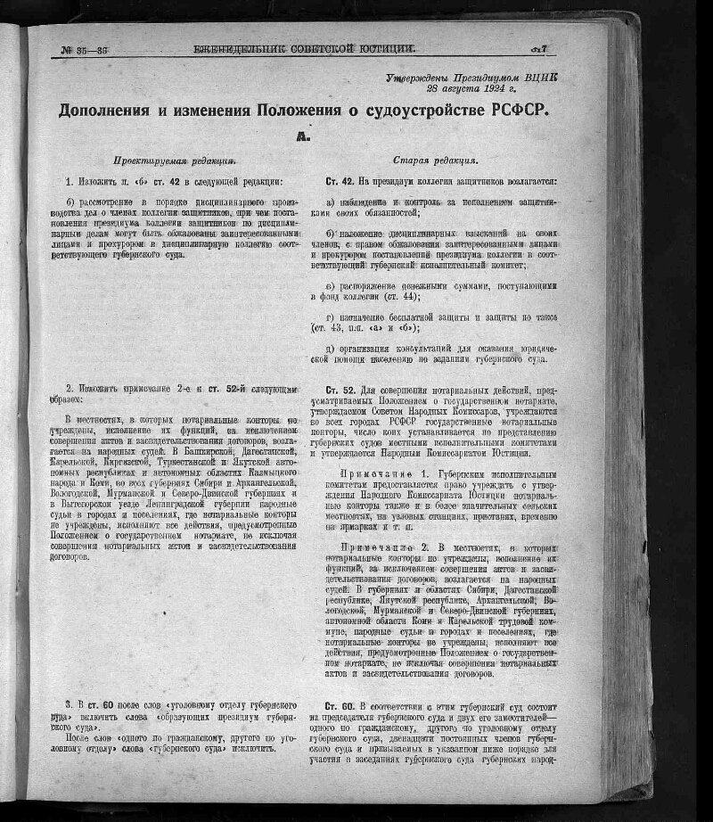 1924, № 35/36 (9-16 сент.). - 1924. - С. [815]-870, [2]. - Содерж.: Изменения и дополнения кодексов законов РСФСР, вносимые на 2-ую сессию ВЦИК XI созыва. Обзор сов. законодательства за время с 21 по 27 августа 1924 г. / М. Брагинский и др.