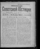 Еженедельник советской юстиции. - Москва : Юридическое издательство НКЮ РСФСР, 1922-1929. - Главными редакторами "Еженедельника Советской Юстиции" были Н. Черлюнчакевич (1922 год), А. Лисицин (1922–1923 гг.), Н. Крыленко (1923–1925 гг.), Д. Курский (1926–1928 гг.), Я. Бранденбургский (1928–1929 гг.), П. Стучка (1929 год). С 1928 года "Еженедельник Советской Юстиции" выходит три раза в месяц с приложением "Судебная практика РСФСР" под редакцией Председателя Верховного Суда РСФСР П. Стучки. Загл.: 1930-1993 - Советская юстиция, 1994-2001 - Российская юстиция
