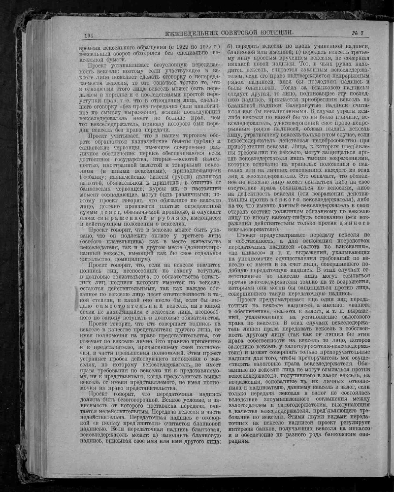 1926, № 7 (21 февраля). - 1926. - С. 193-224. - Содерж.: Проект нового положения о векселях / И. Кобленц. Несколько слов о несостоятельности / А. Розенберг. Особенности обращения взыскания на имущество несостоятельного должника при существовании ликвидкома / В. Лучанинов. Вперед или назад / Ян Кронберг. Судебная деятельность судорганов РСФСР (некоторые статистические данные) / Е. Тарновский, и другие материалы. - Систематический указатель юридической литературы (Вторая половина декабря 1925 г. и январь 1926 г.): с. 220-222. - 16000 экз.