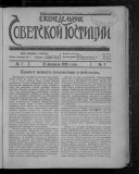 Еженедельник советской юстиции. - Москва : Юридическое издательство НКЮ РСФСР, 1922-1929. - Главными редакторами "Еженедельника Советской Юстиции" были Н. Черлюнчакевич (1922 год), А. Лисицин (1922–1923 гг.), Н. Крыленко (1923–1925 гг.), Д. Курский (1926–1928 гг.), Я. Бранденбургский (1928–1929 гг.), П. Стучка (1929 год). С 1928 года "Еженедельник Советской Юстиции" выходит три раза в месяц с приложением "Судебная практика РСФСР" под редакцией Председателя Верховного Суда РСФСР П. Стучки. Загл.: 1930-1993 - Советская юстиция, 1994-2001 - Российская юстиция