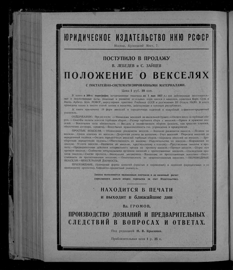 Еженедельник советской юстиции. - Москва : Юридическое издательство НКЮ РСФСР, 1922-1929. - Главными редакторами "Еженедельника Советской Юстиции" были Н. Черлюнчакевич (1922 год), А. Лисицин (1922–1923 гг.), Н. Крыленко (1923–1925 гг.), Д. Курский (1926–1928 гг.), Я. Бранденбургский (1928–1929 гг.), П. Стучка (1929 год). С 1928 года "Еженедельник Советской Юстиции" выходит три раза в месяц с приложением "Судебная практика РСФСР" под редакцией Председателя Верховного Суда РСФСР П. Стучки. Загл.: 1930-1993 - Советская юстиция, 1994-2001 - Российская юстиция