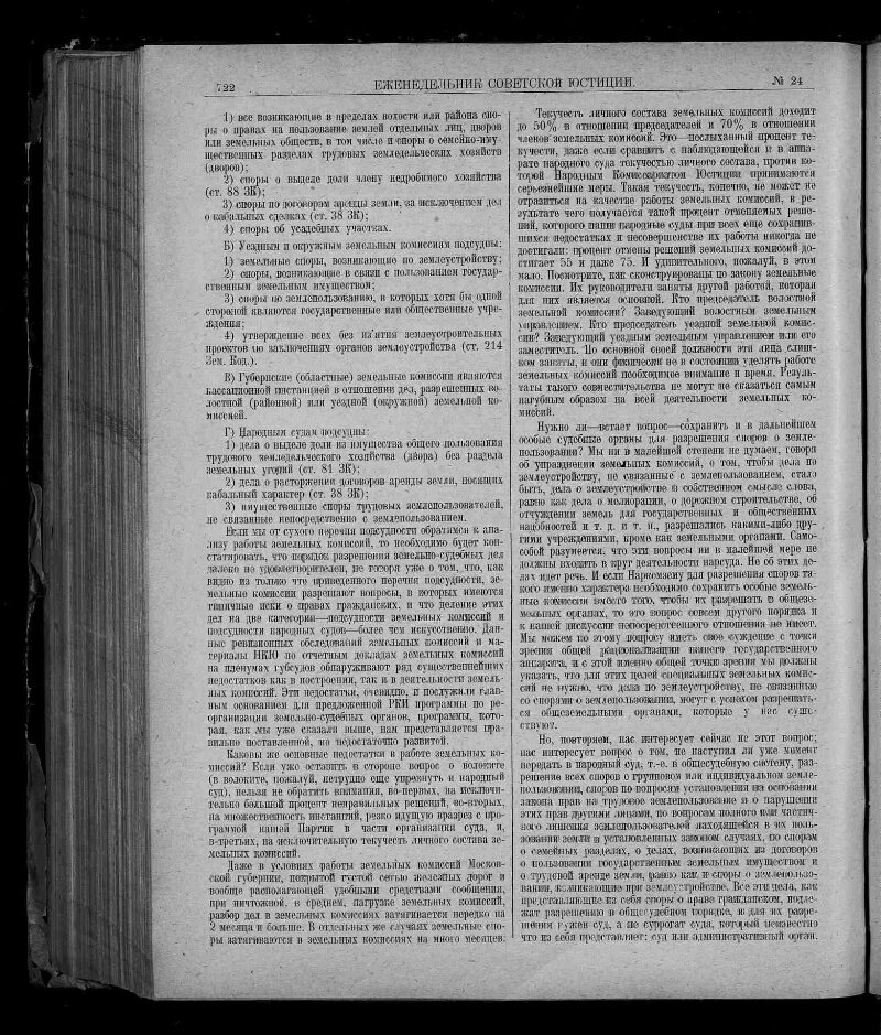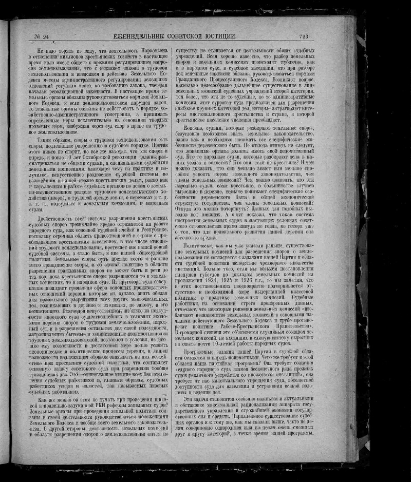 1927, № 24 (22 июня). - 1927. - С. 721-752 : ил. - Содерж.: К вопросу о реформе земельных судов / Я. Бранденбургский. Трудовая аренда земли в деревне / А. Дмитриев. Бесхозяйное и бесхозяйственное имущество / С. Знаменский. Приготовление и покушение по УК / Г. Рогинский. Уголовная ответственность за неплатеж алиментов / В. Соловьев, и другие материалы. - 17000 экз.