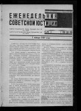 Еженедельник советской юстиции. - Москва : Юридическое издательство НКЮ РСФСР, 1922-1929. - Главными редакторами "Еженедельника Советской Юстиции" были Н. Черлюнчакевич (1922 год), А. Лисицин (1922–1923 гг.), Н. Крыленко (1923–1925 гг.), Д. Курский (1926–1928 гг.), Я. Бранденбургский (1928–1929 гг.), П. Стучка (1929 год). С 1928 года "Еженедельник Советской Юстиции" выходит три раза в месяц с приложением "Судебная практика РСФСР" под редакцией Председателя Верховного Суда РСФСР П. Стучки. Загл.: 1930-1993 - Советская юстиция, 1994-2001 - Российская юстиция
