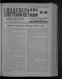 Еженедельник советской юстиции. - Москва : Юридическое издательство НКЮ РСФСР, 1922-1929. - Главными редакторами "Еженедельника Советской Юстиции" были Н. Черлюнчакевич (1922 год), А. Лисицин (1922–1923 гг.), Н. Крыленко (1923–1925 гг.), Д. Курский (1926–1928 гг.), Я. Бранденбургский (1928–1929 гг.), П. Стучка (1929 год). С 1928 года "Еженедельник Советской Юстиции" выходит три раза в месяц с приложением "Судебная практика РСФСР" под редакцией Председателя Верховного Суда РСФСР П. Стучки. Загл.: 1930-1993 - Советская юстиция, 1994-2001 - Российская юстиция