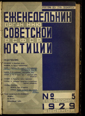 1929, № 5 (7 февраля). - 1929. - С. 97-120. - Содерж.: К перевыборам советов: Передовая. Работа с нарзаседателями / Ф. Нахимсон. Пересмотр ГК и выработка Основ гражданского законодательства Союза ССР / С. Раевич. За незыблемость национализации земли / В. Садовец. Чего не должно быть в деревенской работе прокуратуры / О. Лейкин, и другие материалы. - Библиография в подстрочных примечаниях. - 15000 экз.
