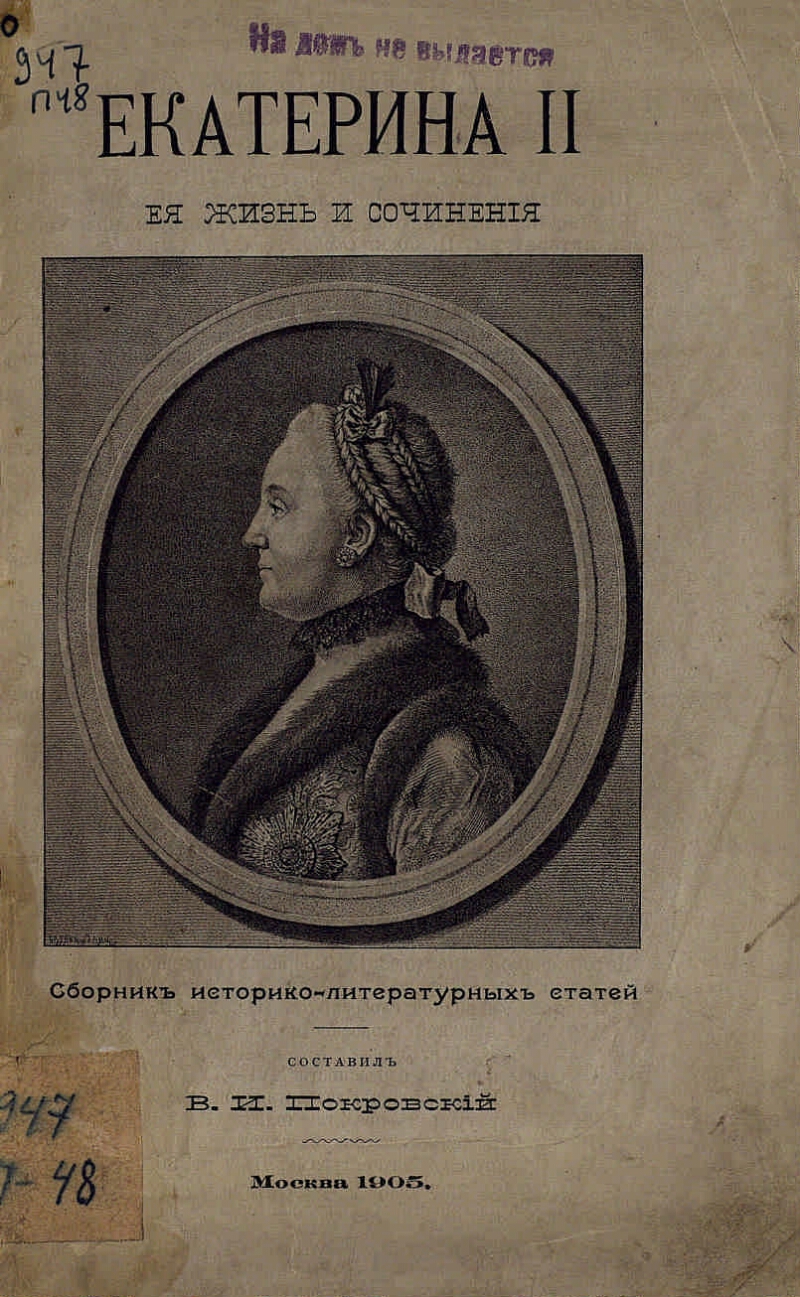 Екатерина II. Её жизнь и сочинения : сборник историко-литературных статей / составил В. Покровский. - Москва : тип. Г. Лисснера и Д. Собко, 1905. - [4], 150 с. ; 21 см