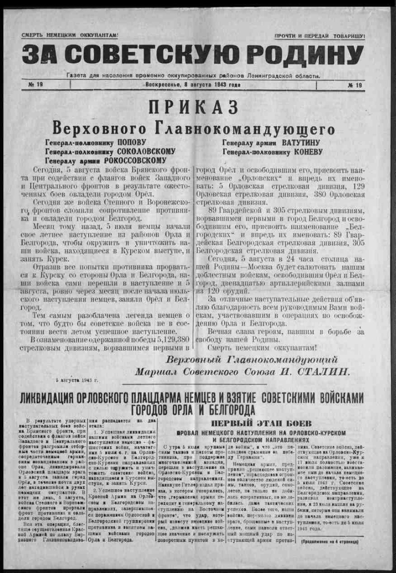1943, № 19 (8 авг.). - 1943. - 4 c.