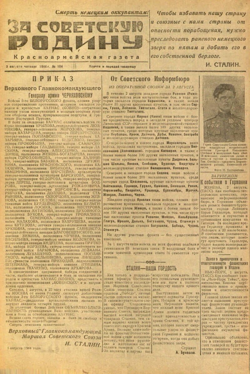 1944, № 104 (3 авг.). - 1944. - 2 c.