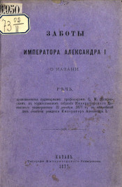 Заботы императора Александра I о Казани : речь, произнесенная ординарным профессором С. М. Шпилевским в торжественном собрании Императорского Казанского университета 12 декабря 1877 г., в юбилейный день столетия рождения Императора Александра I. - Казань : типография Императорского университета, 1877. - 48 с. ; 23 см. - Библиография в подстрочных примечаниях.