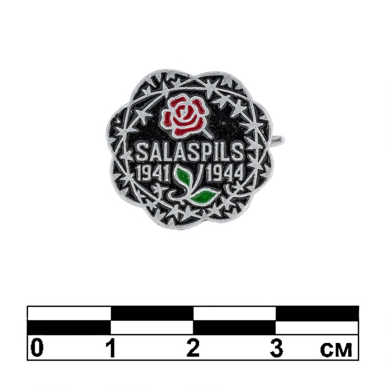 Значок "Salaspils. 1941-1944" : [фотография] / фотограф А. Мелентьев. - Электронные данные (1 файл : 0,9 МБ). - Санкт-Петербург : Президентская библиотека имени Б. Н. Ельцина, 2015. - Режим доступа: интернет-портал Президентской библиотеки имени Б. Н. Ельцина. Заглавие на основе анализа объекта. Копирование пользователями не разрешается. На фотографии: сувенирный значок "Salaspils. 1941-1944". Значок неправильной круглой формы, в центре изображена красная роза и надпись в две строки: "Salaspils. 1941-1944", вокруг символическое изображение колючей проволоки. Белый металл. Черная, зеленая и красная эмали. Штамповка. Диаметр 20 мм. Крепление булавочное. На оборотной стороне - клеймо завода-изготовителя: Завод художественной гравюры на металле (Москва), цена 15 коп. Местонахождение: Из частного собрания. - Сувенирный значок "Salaspils. 1941-1944" посвящен памяти жертв концентрационного лагеря "Куртенгоф", располагавшегося на территории оккупированной нацистской Германией Латвии в городе Саласпилсе в 18 км от Риги. Существовал с октября 1941 года до конца лета 1944 года. Официальное название - Саласпилсская расширенная полицейская тюрьма и лагерь трудового воспитания. Наиболее печальную известность этот лагерь получил из-за содержания в нем малолетних узников, которых использовали для отбора крови для раненых немецких солдат, вследствие чего дети быстро погибали. В 1967 году на месте лагеря был создан Саласпилсский мемориальный комплекс