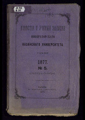Известия и ученые записки Императорского Казанского университета. - Ч. 1, кн. 1 1821 - Ч. 39, кн. 9 - 12 1833 ; [Г. 1] 1834, кн. 1 - Г. 84 1917, кн. 9 ; Т. 85, кн. 1 1925. -Казань : Императорский университет, 1865-1883. - Загл.: 1821-1833 Казанский вестник, издаваемый при императорском Казанском университете; 1834-1861 Ученые записки, издаваемые императорским Казанским университетом; 1862-1864, 1884-1917 Кн. 2 Ученые записки императорского Казанского университета; 1865-1883 Известия и ученые записки императорского Казанского университета; 1884 Т. 20 Известия императорского Казанского университета; 1917, кн. 3/4-10/12 Ученые записки Казанского университета; Т. 85, кн. 1 (1925) - Т. 90, кн. 5/6 (1930); Т. 95, кн. 1 (1935) - Т. 115, кн. 5 (1955) Ученые записки Казанского государственного университета имени В. И. Ульянова-Ленина; Т. 91, кн. [...] (1931) - Т. 94, кн. 8 (1934); Т. 116, кн. 6 (1956)- кн. 7 (1957); Т. 118, кн. 1 (1958) - Т. 130, кн. 4 (1972) Ученые записки; Т. 115, кн. 6 - Т. 116, кн. 5, кн. 8 (1956) - Т. 117, кн. 10 (1957) Ученые записки Казанского ордена Трудового Красного Знамени государственного университета имени В. И. Ульянова-Ленина; Т. 131 (1995) - Т. 134 (1998) -140 (2000) Ученые записки (на обл. Ученые записки Казанского государственного университета); Т. 141 (2001) - Ученые записки Казанского государственного университета. Содержание материала в выпусках распределено по отделам: медицинские науки, историко-филологические науки, юридические науки, физико-математические науки, [и др.]. Вых. с 1821 г. Указатель статей, помещенных в "Ученых записках Казанского университета" за 1834-1872 годы включительно (XVI с.) в журн.: "Известия Императорского Казанского университета" за 1872 г. [Т. 8] (1873). - Содержание "Ученых записок" за предшествовавшие 30 лет с 1834 по 1863 год включительно в журн.: "Ученые записки Императорского Казанского университета" 1865 Т. 1. С. V-XVIII. - Указатель статей, помещенных в "Ученых записках Казанского университета" за 1834-1878 годы включительно (41 с.) в журн.: "Известия и Ученые записки Императорского Казанского университета". 1879, № 1 (янв./февр.). - Выходит вместо: Казанские известия. - В 1865-1883 гг. Ученые записки выходили совместно с Известиями, но с отдельными титульными листами и пагинацией. В 1872 г. из-за задержки изд. Известия и Ученые записки вышли отдельно. С 1884 г. Известия стали издаваться отдельно.