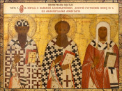 Ч. 9: Свв. Кирилл и Афанасий Александрийские, Леонтий Ростовский. Конец XV в. Из Мало-Кириллова монастыря : [альбом фотографий]. - Электронные графические данные (5 файлов : 28,3 МБ). - Великий Новгород, 22 мая 2012 года. - Режим доступа: интернет-портал Президентской библиотеки имени Б. Н. Ельцина. Заглавие из сопроводительного документа. Дата съемки: 22.05.2012. В девятую часть альбома включены: обложка-заставка, 4 фотографии иконы "Святые Кирилл и Афанасий Александрийские, Леонтий Ростовский". На фотографиях изображены общий вид иконы и фрагменты лиц святых. Икона, представленная в альбоме, являлась храмовым образом церкви Кирилла и Афанасия Мало-Кириллова монастыря. На ней изображены три святых епископа: слева - Кирилл Александрийский, в центре - Афанасий Александрийский, справа - Леонтий Ростовский. Святые представлены в рост, фронтально, в одинаковых позах, с Евангелиями, прижатыми к груди левой рукой. Кирилл и Леонтий благословляют, Афанасий касается Евангелие, обращая на него внимание предстоящих иконе. Этот жест подчеркивает важность символического смысла Священного Писания и выражает одно из главных предназначений святителей - наставление христианской вере. - Использованы материалы сайтов: "Христианство в искусстве" (URL: http://www.icon-art.info/masterpiece.php?lng=ru&mst_id=1199) ; "Иконы России" (URL: http://www.iconrussia.ru/icon/detail.php?ID=2392)