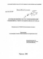 История правовой культуры этнополитических отношений на Северо-Западном Кавказе (XVI - XIX вв.) : диссертация ... кандидата исторических наук : 07.00.02 / Кипкеев Ислам Султанович ; Карачаево-Черкес. гос. технол. акад. - Черкесск, 2005. - 174 с. : ил. - Библиогр.: с. 164-173 и в подстроч. примеч.