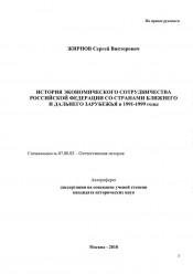История экономического сотрудничества Российской Федерации со странами ближнего и дальнего зарубежья в 1991-1999 годы : автореферат диссертации на соискание ученой степени кандидата исторических наук : специальность 07.00.02 / Жирнов Сергей Викторович ; [Рос. ун-т дружбы народов]. - Москва, 2010. -25 с. ; 21 см. - Библиография: с. 25. - Рез. англ.. - На правах рукописи.