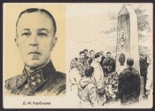 Карбышев Д. М. Герой Советского Союза [Изоматериал : электронный ресурс] : [открытка]. - Электронные данные (2 файла : 2,9 МБ). -(Санкт-Петербург: Президентская библиотека имени Б. Н. Ельцина , 2015). - Режим доступа: интернет-портал Президентской библиотеки имени Б. Н. Ельцина. Заглавие с экрана. На лицевой стороне открытки 2 изображения: портрет Д. М. Карбышева и рисунок с изображением памятника Д. М. Карбышеву на территории бывшего концентрационного лагеря Маутхаузен, Австрия, на оборотной стороне - биографические сведения. Электронная репродукция открытки: Карбышев Д. М. Герой Советского Союза [Изоматериал]. Изогиз, 1961 (Калинин : Полиграфкомбинат). 1 открытка : фотомеханическая печать. Тираж 200000 экз. А 01684-61 г., 1 коп. Местонахождение: Детский музей открытки, Санкт-Петербург. Копирование пользователями не разрешается.
