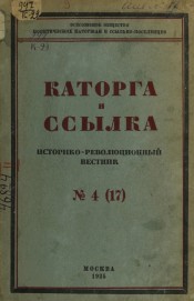 1925, № 4 (кн. 17) / под общей редакцией Вл. Виленского (Сибирякова). - 1925. - 305, [6] с. - Содерж. отделы: I. Из истории революционного движения. II. Тюрьма, каторга, ссылка и эмиграция. III. Лики отошедших. IV. Библиография. V. Хроника. Содерж. статьи: Организация и типография "Искры" в России (Из личных воспоминаний) / Л. Гольдман. Революционное движение среди крестьян на Юге России и социал-демократия (окончание) / А. Черкунов. В дни Ранненкампфа (окончание) / П. Кларк. Мои воспоминания (окончание) / В. Перовский. Письмо С. С. Синегуба Льву Тихомирову. Сообщил Н. Чарушин. Афрасион Мерквиладзе и его красивая сотня / З. Чиквиладзе. В рядах Р.С.-Д.Р.П. / Г. Беленький. Матросы-декабристы. Материалы к восстанию 14 декабря 1825 г. / А. Дрезен. Мелочи прошлого: 1). Письмо Г. А. Лопатина Александру II. Сообщил Р. М. Кантор. 2). Эпизод из политической биографии Д. Н. Овсянико-Куликовского. Сообщил С. М. Брейтбург. 3). Азеф в роли контрабандиста. Сообщил И. Скаличев. 4). Попытка упразднить Петропавловскую крепость. Сообщил Н. Ростов и др.