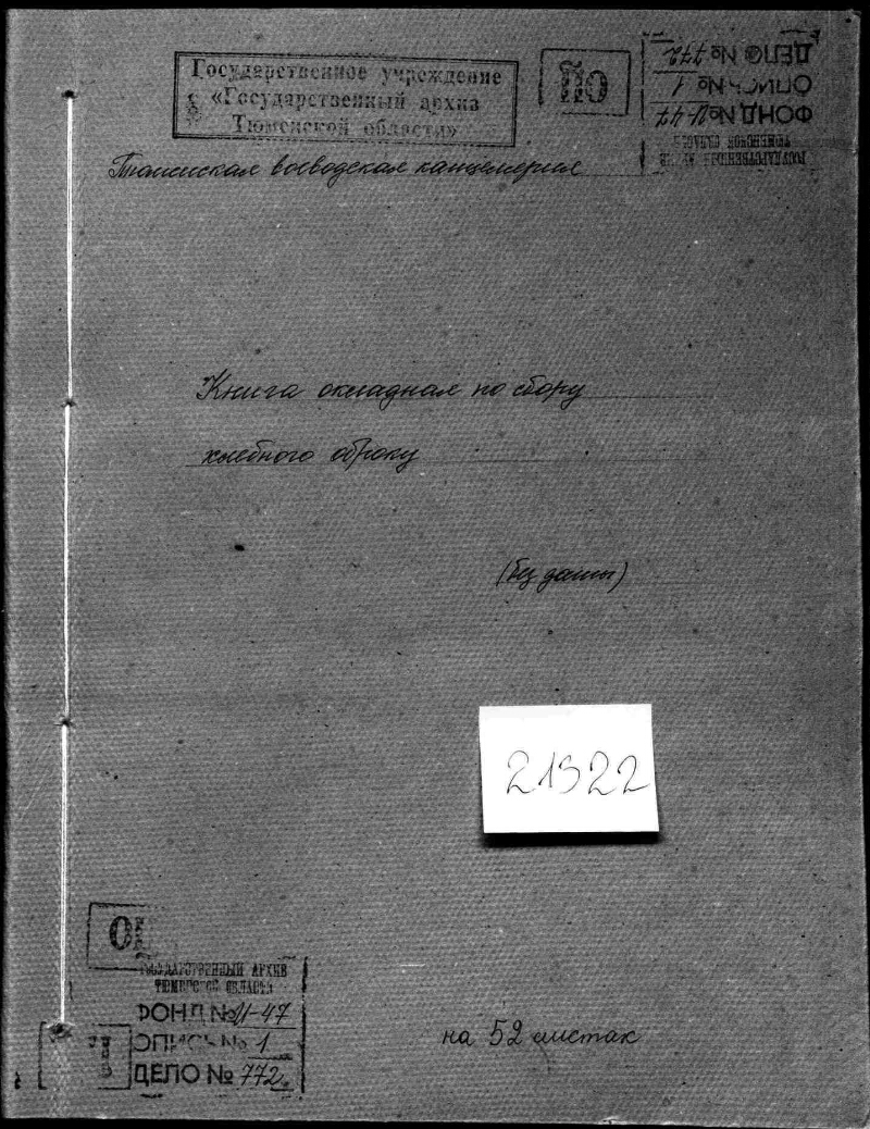 Книга окладная по сбору хлебного оброка [Дело]. - 52 листа. - (Фонд Тюменская воеводская канцелярия. Опись № 1). - Рукописный текст. Скоропись. Чернила. Книга окладная по сбору хлебного оброка. Документ 17-18 вв., точная дата создания неизвестна