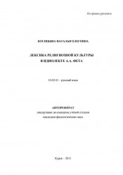 Лексика религиозной культуры в идиолекте А. А. Фета : автореферат диссертации на соискание ученой степени кандидата филологических наук : специальность 10.02.01 / Косицына Наталья Олеговна ; [Кур. гос. ун-т]. - Курск, 2011. - 21 с. - Место защиты: Кур. гос. ун-т. - Библиогр.: с. 20-21 (12 назв.).