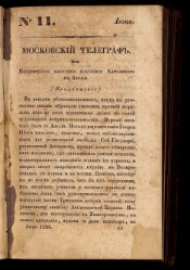 Московский телеграф : Журнал литературы, критики, наук и художеств, изд. Николаем Полевым. - Москва, 1830. - Подзаг.: Ч. 1 - 6 (1825) Журнал литературы, критики, наук и художеств, изд. Николаем Полевым; Ч. 7 (1825) - 56 (1834) Изд. Николаем Полевым.