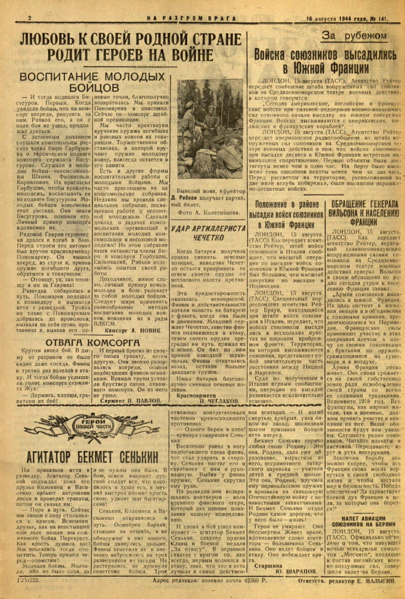 1944, № 141 (16 авг.). - 1944. - 2 c.