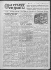 На страже Родины : газета Ленинградского военного округа. - 1918, 1 мая -. - Ленинград, 1938-. - Заглавие: 1918-1921 Красная Армия, Вооруженный народ, Боевая правда ; 1921-1938 Красная звезда. Подзаг.: 1941 г. - ежедневная красноармейская газета Ленинградского военного округа ; 1945 г. - ежедневная красноармейская газета Ленинградского фронта. Ответственный редактор: 1945 г. - М. Гордон. Адрес: 1945 г. - Полевая почта 22245 А. Первый номер газеты «На страже Родины» вышел 1 мая 1918 года под названием «Красная Армия». Позднее газета выходила под разными названиями: «Вооруженный народ», «Боевая правда», а с 10 ноября 1921 года - «Красная звезда», как печатный орган Петроградского военного округа. Название «На страже Родины» появляется с 4 февраля 1938 года, когда газета становится органом Ленинградского военного округа. 7 апреля 1940 года газета «На страже Родины» первой из окружных газет была удостоена высокой награды – ордена Красного Знамени. На ее страницах печатались фельетоны о солдатских буднях во время советско-финской войны 1939-1940 гг., подписанные псевдонимом Вася Теркин – персонажем, созданным членами редколлегии газеты в составе А. Твардовского, Н. Тихонова, С. Вашенцева, В. Саянова и др. С началом Великой Отечественной войны окружная газета стала фронтовой. С ноября 2010 года - печатный орган Западного военного округа газета «На страже Родины», выходит в качестве региональной вкладки к центральному изданию Министерства обороны Российской Федерации газете «Красная Звезда». Периодичность выхода 1 раз в неделю, по субботам