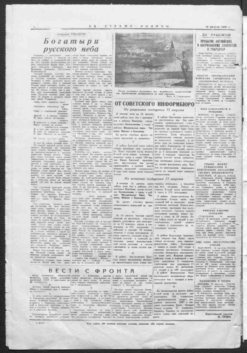 1942, № 199 (7117) (16 августа). - 1942. - 4 c.