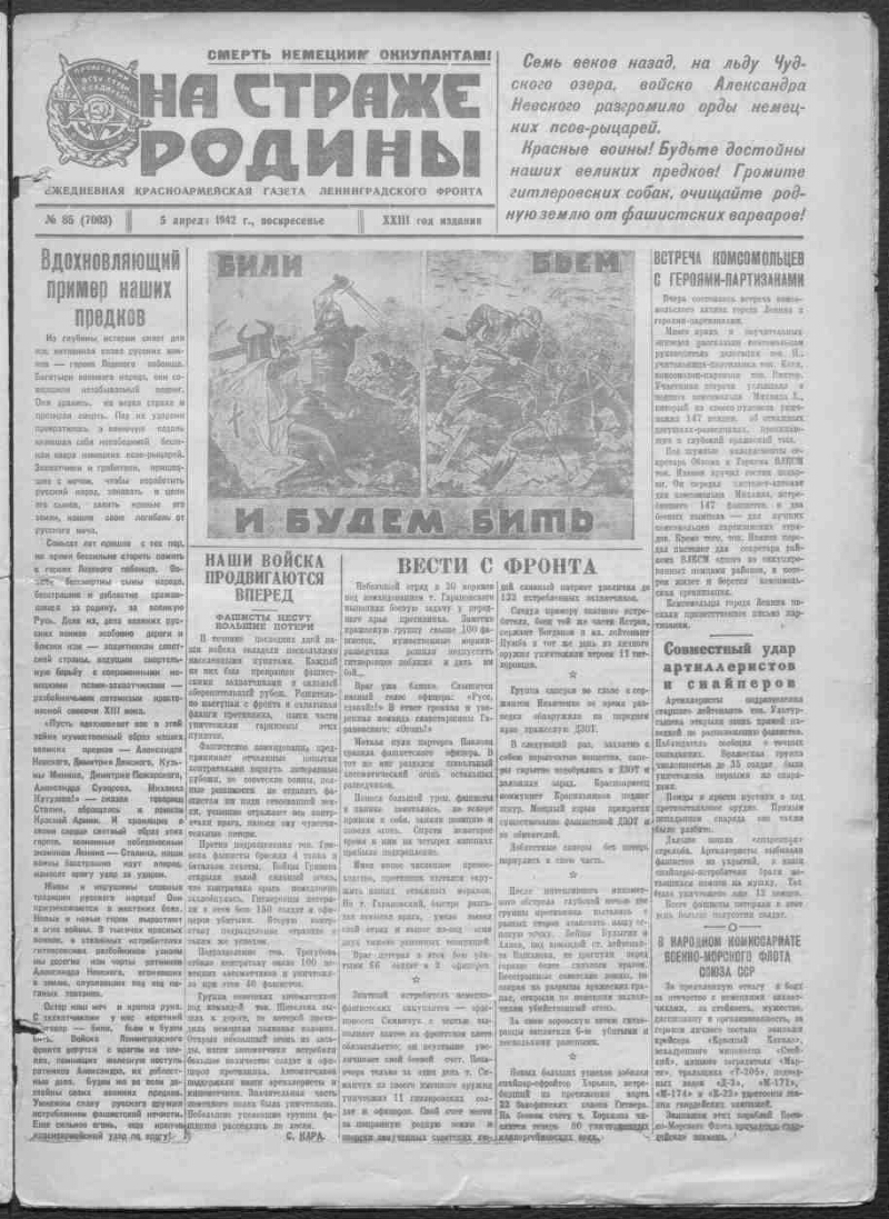 1942, № 85 (7003) (5 апреля). - 1942. - 4 c.