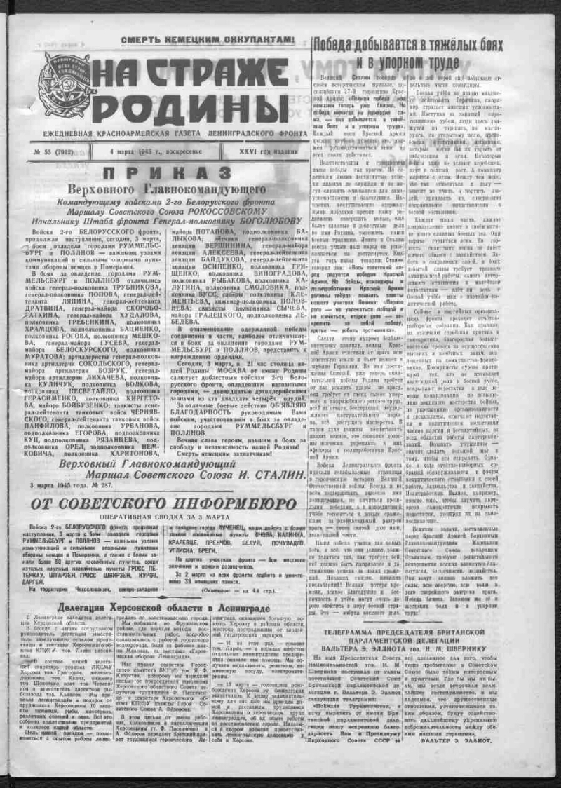 1945, № 55 (7912) (4 марта). - 1945. - 4 c.