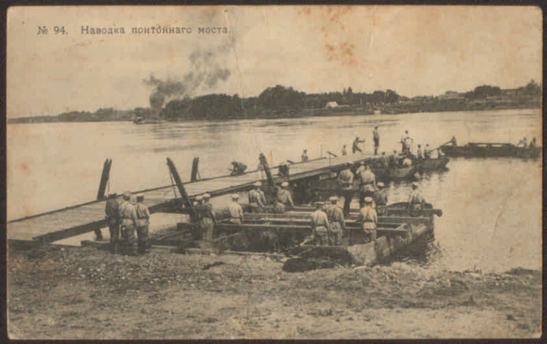 Наводка понтонного моста [Изоматериал : электронный ресурс] : [открытка]. - Электронные данные (2 файла : 1,86 МБ). - (Санкт-Петербург: Президентская библиотека имени Б. Н. Ельцина , 2014). - Режим доступа: интернет-портал Президентской библиотеки имени Б. Н. Ельцина. Заглавие с экрана. На оборотной стороне: Репродукция воспрещена. Электронная репродукция почтовой карточки: Наводка понтонного моста [Изоматериал]. Луга : издание Г. В. Грузинцева, 1914 (Москва : Фототипия Шерер, Набгольц и Ко). 1 открытка : фототипия. № 94. Местонахождение: Детский музей открытки, Санкт-Петербург. Копирование пользователями не разрешается
