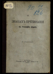 Автор Шевченко Никифор Евтропиевич Описание Шевченко, Никифор Евтропиевич О знаках препинания в русском языке / Н. Шевченко. - Харьков : тип. А. Дарре, 1887. - [8], 40 с. ; 25 . 1. Русский язык (коллекция). 2. Русский язык -- Пунктуация -- Учебные издания. ББК 81.411.2-9-2ББК 81.411.2-67я79 Источник электронной копии: ПБМесто хранения оригинала: ГПИБ Издательство тип. А. Дарре Объект в каталогах Языкознание В коллекциях Русский язык → История исследования и изучения русского языка → Учебная литература по русскому языку → Собрание учебников и учебных пособий по русскому языку → Синтаксис