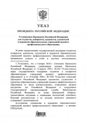 О стипендиях Президента Российской Федерации для студентов, аспирантов, адъюнктов, слушателей и курсантов образовательных учреждений высшего профессионального образования : Указ Президента Российской Федерации от 14 февраля 2010 года № 182. - Москва, 2010. - 4 л. - Электронная копия