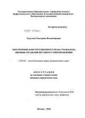 Обеспечение конституционного права граждан на жилище органами местного самоуправления : диссертация ... кандидата юридических наук : 12.00.02 / Бадулина Екатерина Владимировна ; Государственное образовательное бюджетное учреждение высшего профессионального образования "Государственный университет-Высшая школа экономики". - Москва, 2011. - 200 с. : ил.