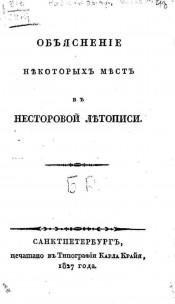 Объяснение некоторых мест в Несторовой летописи / [Б[ар.] Р.]. - Санктпетербург : печатано в типографии Карла Крайя, 1827. - 24 с. ; 19. - Авт. установлен по изд.: Геннади. Справочный словарь о русских писателях... Т. 3, с. 263. Авт. указан конце текста. С автогр. авт. Отт. из "Отеч. зап., изд. П. Свиньиным". 1827, ч. 29, № 82