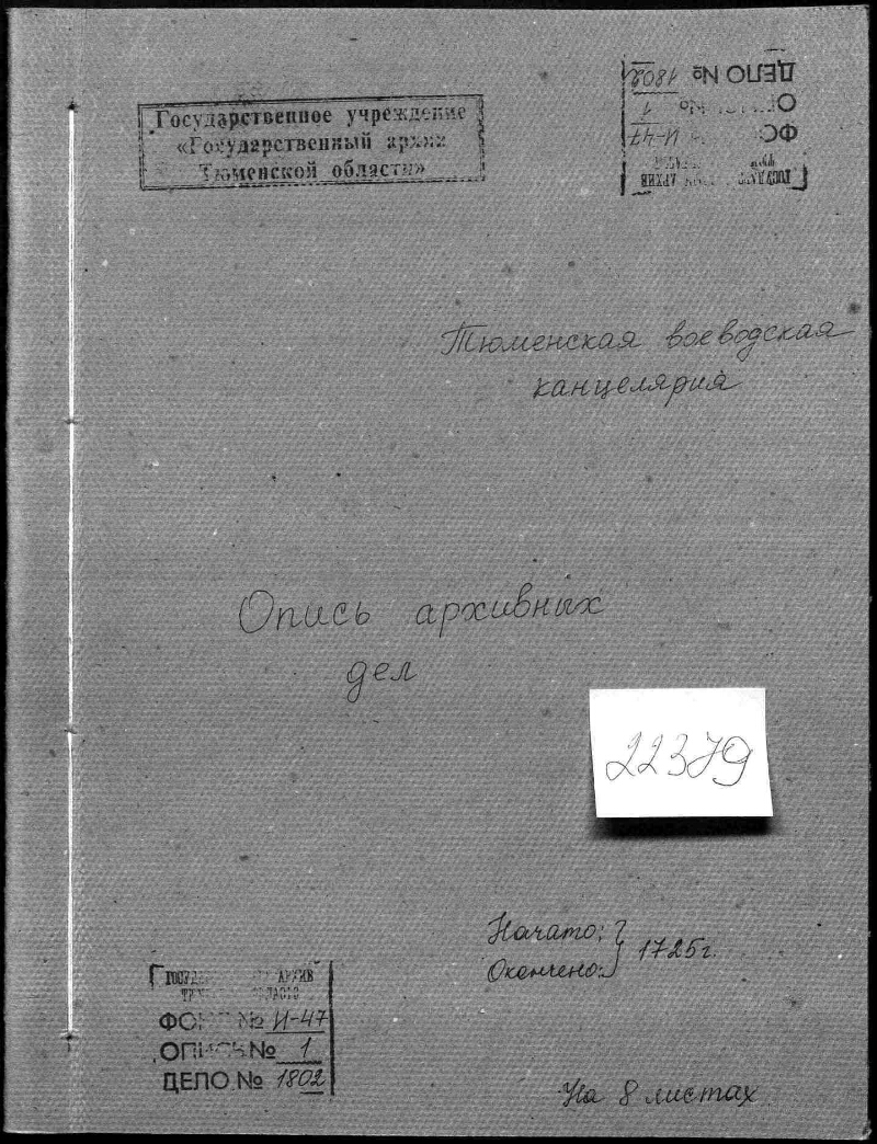 | 225 | 1# | $a | Фонд Тюменская воеводская канцелярия |
