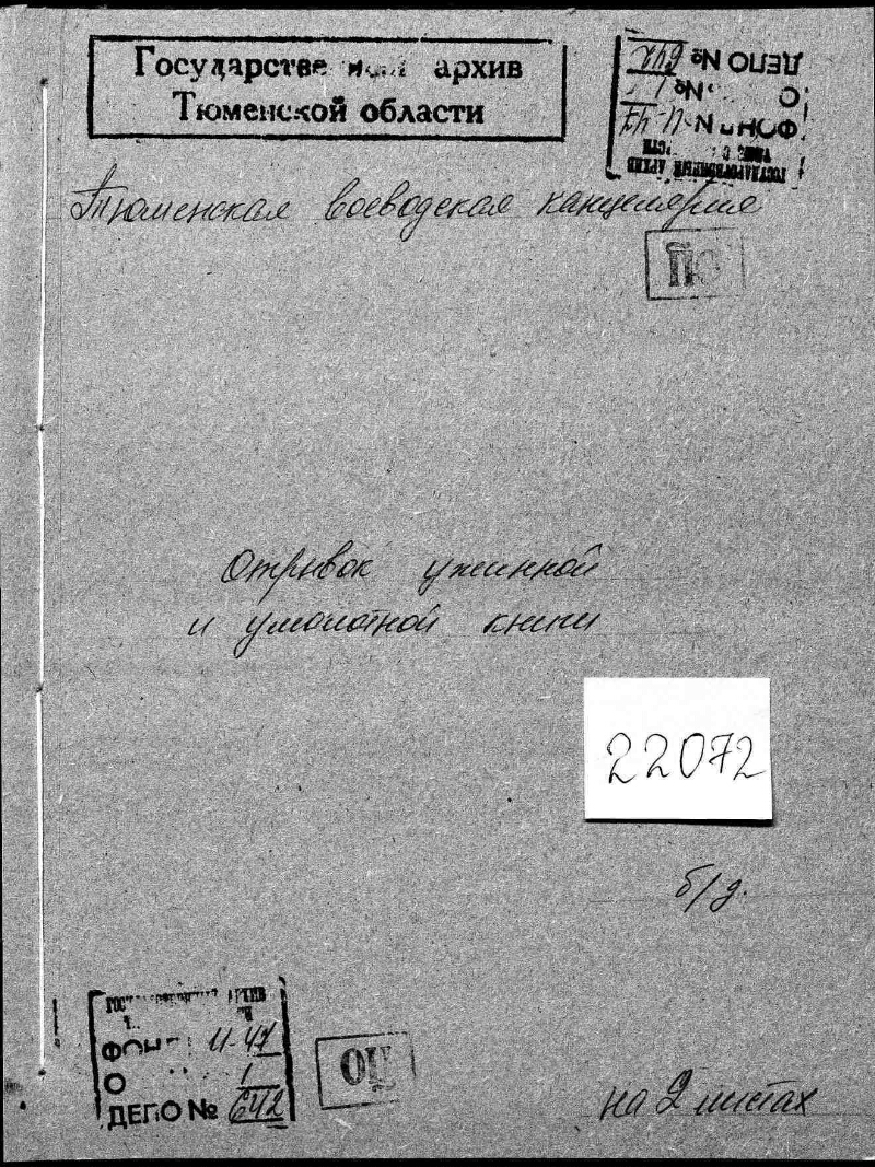 Источник электронной копии: Гос. архив Тюменской области Место хранения оригинала: Гос. архив Тюменской области. Ф. И-47. Оп. 1. Д. 642. |