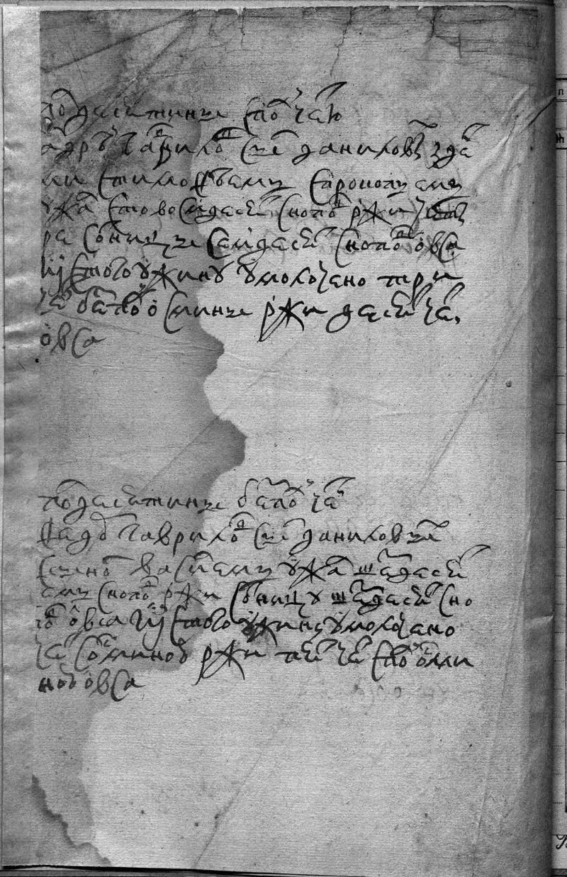 Отрывок ужинной и умолотной книги [Дело]. - 2 листа. - (Фонд Тюменская воеводская канцелярия. Опись № 1). - Рукописный текст. Скоропись. Чернила. Отрывок ужинной и умолотной книги. Документ 17-18 вв., точная дата создания неизвестна