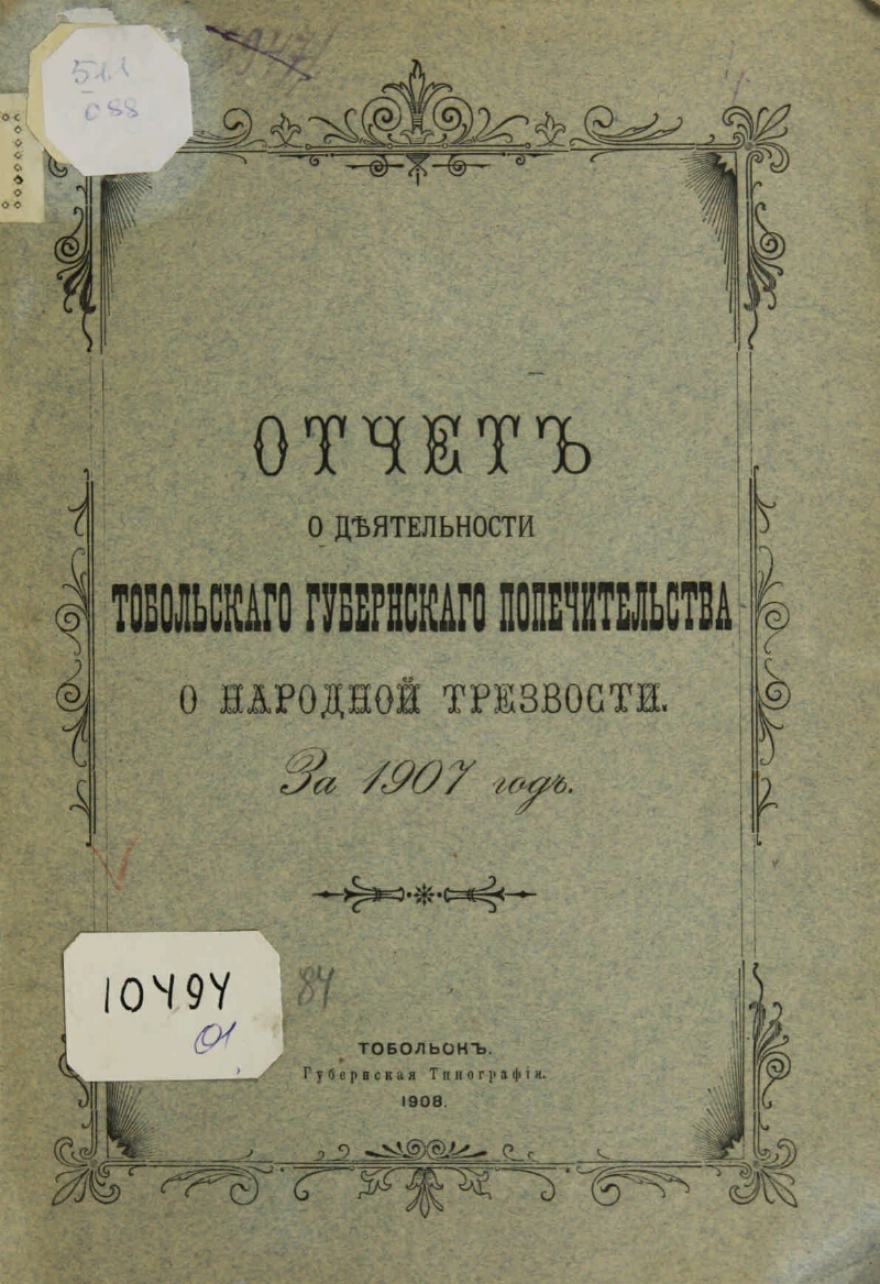 Отчет о деятельности комитета Тобольского общества трезвости .... - Тобольск : Губернская типография , 1894-
