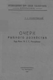 Очерк рыбного хозяйства Бур.-Монг. А. С. С. Республики / Е. С. Соллертинский ; Организационное бюро секции Рыб-охот-союза Бурсельсоюза. - Верхнеудинск : тип. БГИ, 1929. - 69, 11 с. : табл. ; 21. - Содерж.: От автора; Водные фонды (с. 1-11); Рыбы Бурреспублики (с. 11-20); Состояние рыбных запасов (с. 20-28); Промысловое население (с. 28-30); Методы лова (с. 30-36); Цены на рыбу, сбыт и рынки сбыта (с. 36-45); Меры регулирования рыболовства (с. 45-50); Коллективизация промыслового хозяйства (с. 50-52); Нерпа и нерпование (с. 52-56); Рыбоводство и инвентаризация водоемов (с. 56-64); Доходы и расходы, арендная политика и финансирование (с. 64-67); Перспективы рыбного хозяйства (с. 67-69); Резолюции 3-го Республиканского съезда рыбаков (с.в прил.). - Без титульного листа. Описано по обложке