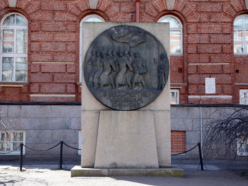 Памятник "В бессмертие ушедшим" [Изоматериал : электронный ресурс] : [альбом фотографий] / фото В. Н. Гулякина. - Электронные графические данные (3 файла : 59,1 МБ). - Санкт-Петербург, 2013. - Режим доступа: интернет-портал Президентской библиотеки имени Б. Н. Ельцина. Информация о фотографиях предоставлена автором. В альбом включены 3 фотографии памятника-медальона "В бессмертие ушедшим": 1. Общий вид памятника во дворе СПбГУ ; 2-3. Крупный план памятника. Памятник "В бессмертие ушедшим" установлен во внутреннем дворе Санкт-Петербургского государственного университета 30 мая 1986 года по проекту архитектора В. С. Васильчикова и скульпторов В. П. и С. В. Астаповых. Памятник представляет собой гранитную стелу с бронзовым барельефом круглой формы, на котором изображены воины, уходящие на фронт, и провожающая их женщина с ребёнком. Памятник посвящен бойцам из состава студентов, преподавателей и профессоров ЛГУ (ныне СПбГУ), защищавших нашу Родину во время Великой Отечественной войны. Адрес: Университетская наб., д. 7/9