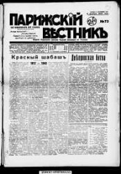 Парижский вестник = Le courrier de Paris : еженедельная русская газета, выходящая по воскресеньям : издание Управления делами русской эмиграции во Франции. - 1942, № 1 (14 июня) - 1944 (12 августа). -Париж, 1942, июнь - 1944, август. - 45х30 см. - Ответственные редакторы (разновременно): П. H. Богданович, О. В. Пузино, H. В. Пятницкий. Еженедельник «Парижский вестник» («Le courrier de Paris») — официальный орган Управления делами русских эмигрантов во Франции, издавался в Париже по воскресеньям с 14 июня 1942 по 12 августа 1944 гг. Всего вышли 112 номеров. Среди авторов представленных в еженедельнике материалов - генерал от кавалерии П. Н. Краснов, генерал-лейтенант Генерального штаба профессор H. Н. Головин, А. Н. Бенуа, Г. С. Евангулов, H. Н. Еврсинов, С. Лифарь, Г. А. Мейер, профессор-экономист П. П. Мигулин, И. Д. Сургучев, H. Н. Туроверов, И. С. Шмелев, Ю. С. Жеребков и др. На страницах «Парижского вестника» печатались статьи общественно-политического характера, материалы о положении русской диаспоры в Париже и Франции, освещавшие быт и повседневную жизнь эмиграции, литературно-художественная хроника и др.