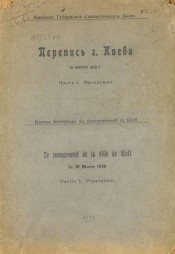 Перепись г. Киева 16 марта 1919 г. = Перепис м. Киiва 16 березня 1919 р./ Киев. губ. стат. бюро ; [авт. предисл. Ал. Волков]. - Киев : [Б. и.] , 1920 |